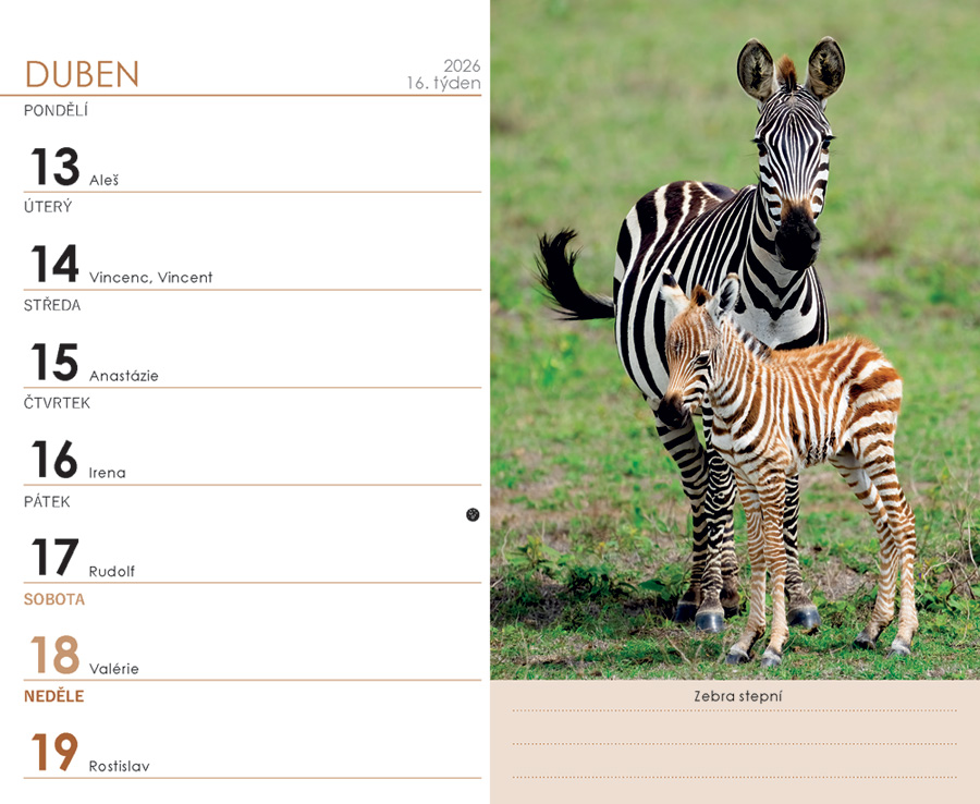 | Popis | Ideální kalendář za ideální cenu s týdenním kalendáriem a v praktickém formátu s motivem zvířátek. |