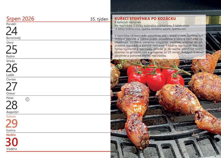 | Popis | Stolní kalendář s týdenním kalendáriem a s tipy na grilování |