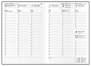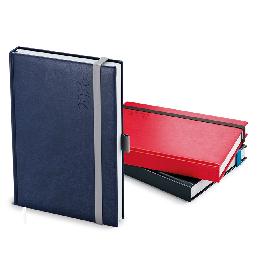 | Popis | Jemně hladký materiál vhodný k označení logem sítotiskem, tampoprintem nebo ražbou. Čtyřjazyčné kalendárium (CZ, SK, A, N), perforované růžky, gumička k uzavření, poutko na tužku, bohaté info strany, bílý papír. |