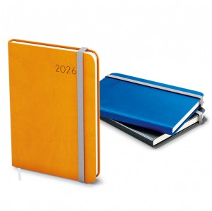 | Popis | Jemný hladký materiál vhodný k označení logem ražbou nebo sítotiskem. Čtyřjazyčné kalendárium (CZ, SK, A, N), gumička k uzavření, perforované růžky, záložka, bohaté info strany, bílý papír. |