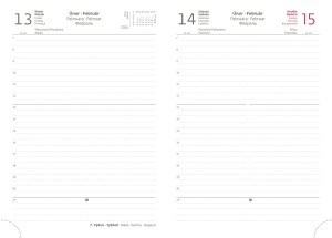 | Popis | Desky jsou vyrobené z matného materiálu ze zušlechtěného papíru bez struktur. Vhodný k označení logem sítotiskem. Pětijazyčné kalendárium (CZ, SK, A, N, R), bohaté info strany, kvalitní bílý papír. |