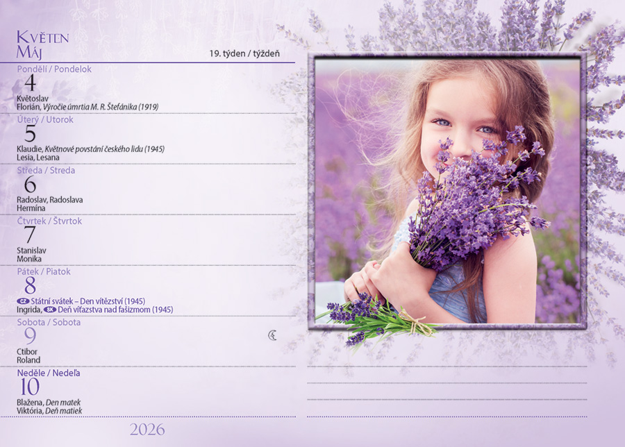 | Popis | Stolní kalendář s týdenním kalendáriem a s levandulovým motivem. |