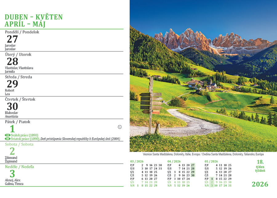 | Popis | Stolní kalendář s týdenním kalendáriem s obrázky přírodních scenérií. |