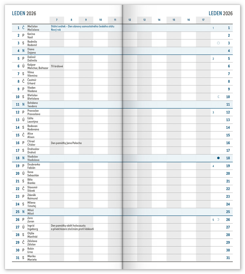 | Kategorie | Kalendáře a diáře 2026 / Diáře / plánovací měsíční |