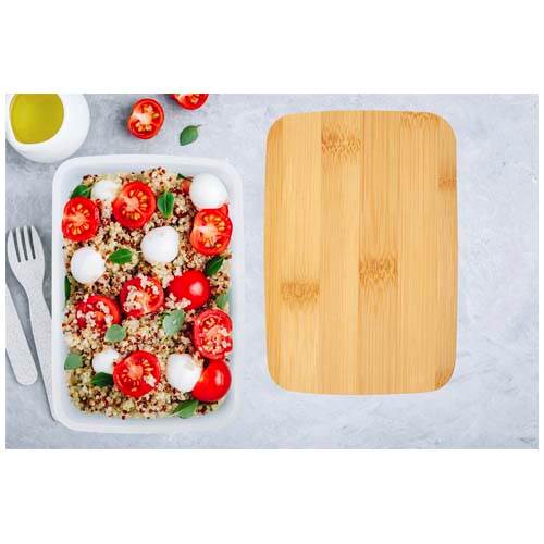 | Název | Bílý plast. box 500ml, elast. pásek, bambus. víko |
