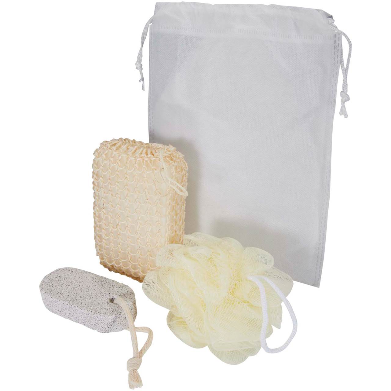 | Popis | 3dílná sada koupelnových doplňků obsahující kouli do koupele / lufu, pemzu a houbu ze sisalového konopí. Velikost koule do koupele / lufy: 9 cm. Velikost pemzy: 9,5 × 4,5 × 1,5 cm. Velikost konopné houby: 14 × 8 × 5 cm. Dodáváno v sáčku z polyesteru. |