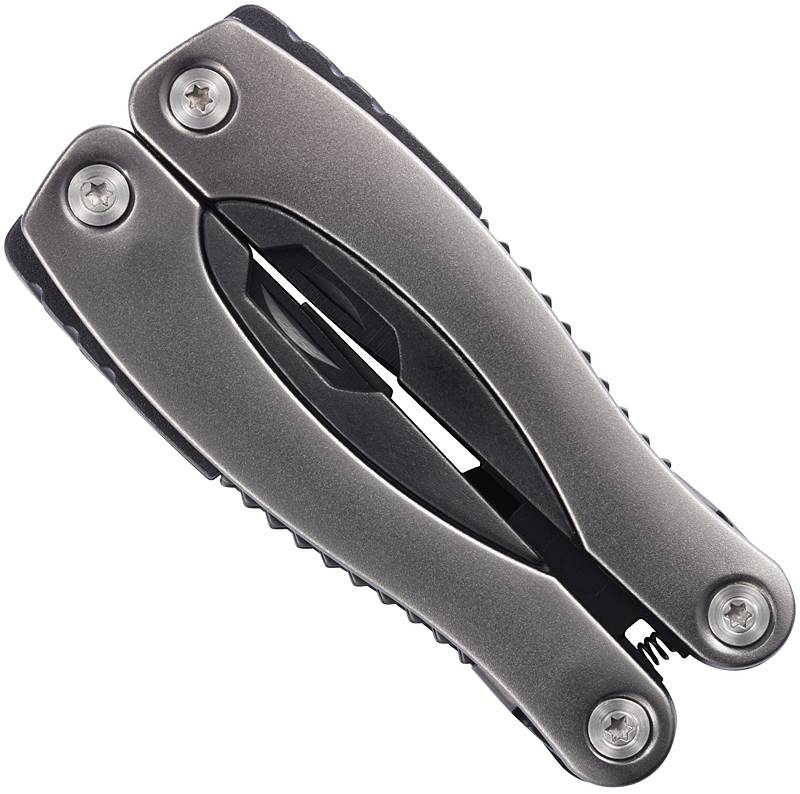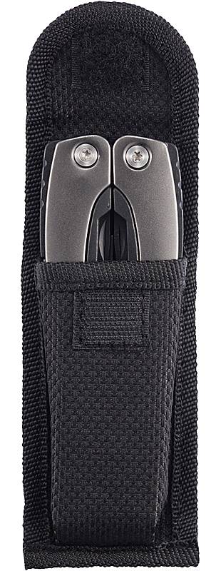 | Popis | Černé multifunkční kleště, 14 funkcí, z nerez oceli s rukojetí z eloxovaného hliníku. Včetně černého pouzdra. Obvykle baleno jednotlivě v krabičce. |