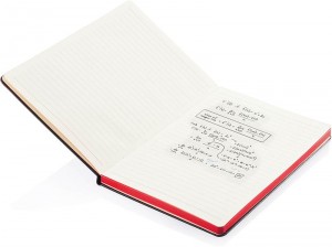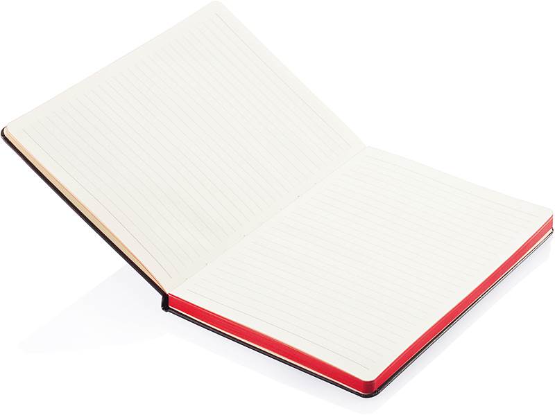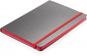 | Popis | Poznámkový blok s tvrdými deskami s 160 listy papíru s gramáží 80 g. Okraje stránek ladí s barvou elastického popruhu. |