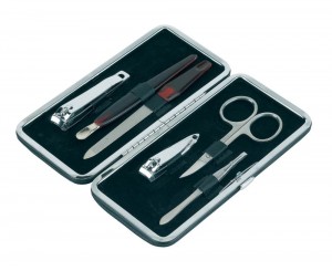 | Popis | Elegantní manikúra s pouzdrem z umělé kůže a zapínáním na zacvaknutí kovového knoflíku obsahuje nůžky na nehty, pilník, pinzetu, nástroj na úpravu kůžičky a 2x kleštičky na nehty. Nástroje jsou z oceli, obal PVC. |