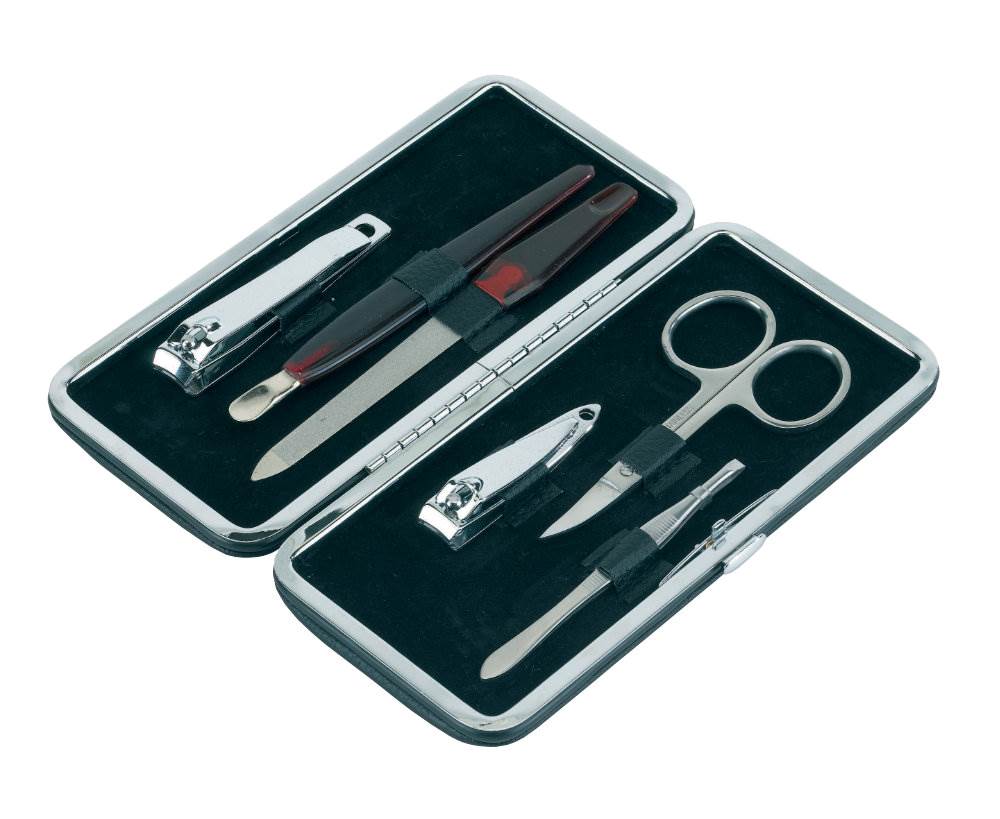 | Název | Černá šestidílná manikúra v pouzdru z umělé kůže |