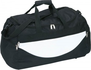 | Popis | Velká cestovní nebo sportovní taška z 600D polyesteru má hlavní prostor, bílou přední kapsu i boční kapsy uzavíratelné na zip, zpevněná držadla a odnímatelný nastavitelný ramenní popruh. |