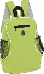 | Popis | Batoh z 600D polyesteru má přední kapsu s malým zipem a otvorem pro vývod sluchátek, dvě boční síťované kapsy, hlavní prostor s uzavíráním na zip, poutko na zavěšení a polstrované nastavitelné ramenní popruhy. Materiál batohu neumožňuje tisk sítotiskem. |