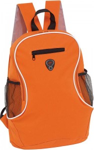 | Popis | Batoh z 600D polyesteru má přední kapsu s malým zipem a otvorem pro vývod sluchátek, dvě boční síťované kapsy, hlavní prostor s uzavíráním na zip, poutko na zavěšení a polstrované nastavitelné ramenní popruhy. Materiál batohu neumožňuje tisk sítotiskem. |