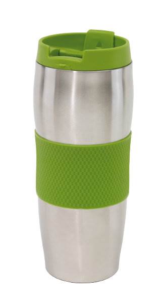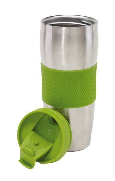 | Popis | Dvouplášťový cestovní hrnek je vyroben z nerezové oceli na vnitřní a vnější straně, má barevné plastové šroubovací víčko s pítkem, barevný gumový úchop pro lepší přilnavost a pogumované dno pro dobrou přilnavost k povrchu. Objem 380 ml. Obvykle baleno jednotlivě v dárkové krabičce. |