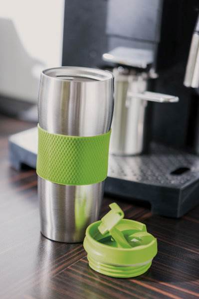 | Název | Stříbrný celonerezový termohrnek, zelené doplňky |