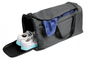 | Popis | Sportovní taška z 300D polyesteru s postranní kapsou na boty: prostorná hlavní přihrádka na zip, velká přední kapsa na zip, boční síťovaná kapsa, nastavitelný a odnímatelný ramenní popruh s ramenní podložkou, zesílené nosné rukojeti. Obvykle baleno jednotlivě v sáčku. |