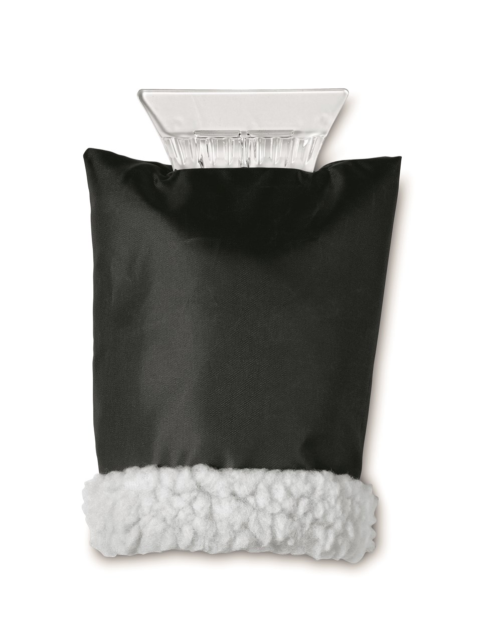 | Popis | Plastová škrabka na zamrzlá okna je spojena s ochrannou hřejivou rukavicí podloženou umělým kožíškem. Na rukavici lze dotisk pouze transferovým potiskem. Na plastovou část je možné umístit potisk o velikosti max. 70x15 mm (jednobarva) 60x15 mm (vícebarva), na látkovou část pak 130x150 mm. |