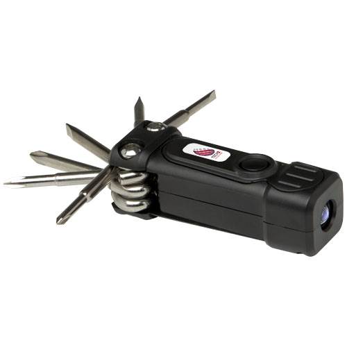 | Popis | Kompaktní sada šroubováků 8 v 1 se svítilnou vyrobená z 20% recyklovaného plastu s certifikací RCS. Standard Recycled Claim Standard (RCS) ověřuje recyklovaný obsah produktu v celém dodavatelském řetězci. Tento praktický nástroj obsahuje 2 LED světla, 3 hlavy křížového šroubováku a 3 hlavy plochého šroubováku. Dodává se se třemi čočkovými bateriemi LR44. Zabaleno v hnědé papírové dárkové krabičce STAC z udržitelných zdrojů. |