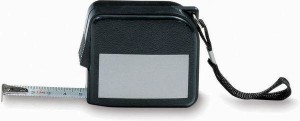 | Popis | Svinovací metr o délce 3m se stupnicí v cm, automatickou brzdou a kovovým háčkem, pomocí něhož pásmo zachytíte za okraj či hranu. Metr je uložen v černém platovém obdélníkovém pouzdru s textilním poutkem na zavěšení. Pro potisk slouží obdélníková stříbrná ploška o velikosti 40x20 mm. Obvykle baleno jednotlivě v kartonové transportní krabičce. |