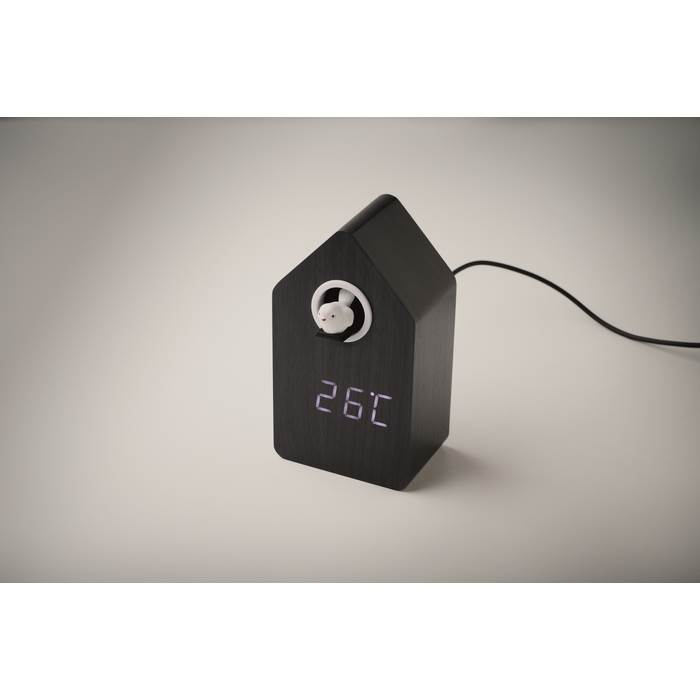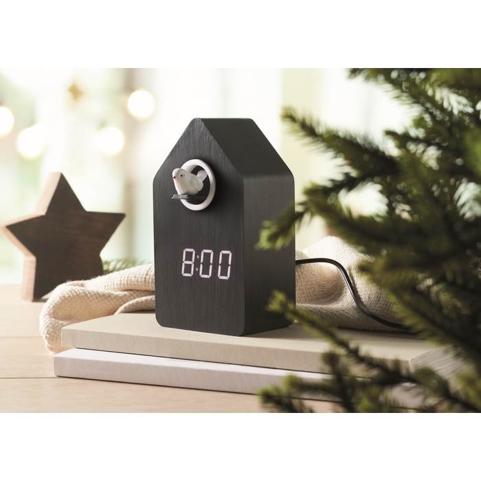 | Popis | Kukačkové hodiny z MDF s vestavěným budíkem/ukazatelem teploty. Ptáček vykoukne a kuká každou celou hodinu a také během budíku. Bílý LED displej. Zvuk se automaticky ztlumí mezi 22:00 a 6:00. V ceně zboží je zahrnut recyklační příspěvek na likvidaci elektroodpadů ve výši 3,05 Kč. |