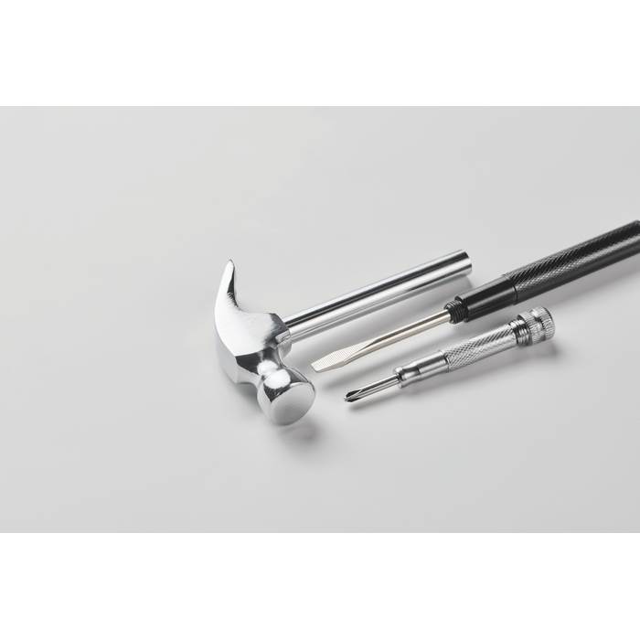 | Popis | Kladivo a šroubovák z uhlíkové oceli. Obsahuje 4 bity integrované v rukojeti. Obvykle baleno kusově v krabici. |