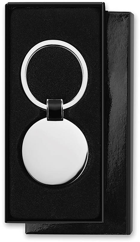 | Popis | Kulatý kovový přívěsek má leskle stříbrný povrch potažený niklem, kroužek na klíče je připojen širším barevným kovovým poutkem. Přívěsek je zabalen v černé dárkové kartonové krabičce. |