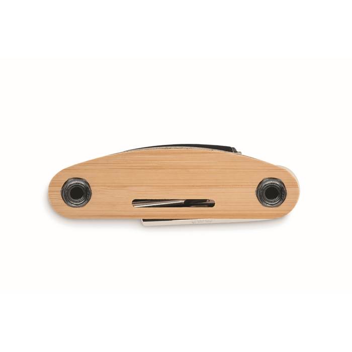 | Popis | Multifunkční nářadí z nerezové oceli s bambusovým krytem. 11 funkcí jako je imbus, plochý a křížový šroubovák, nástrčný klíč a další. Baleno v krabičce. |