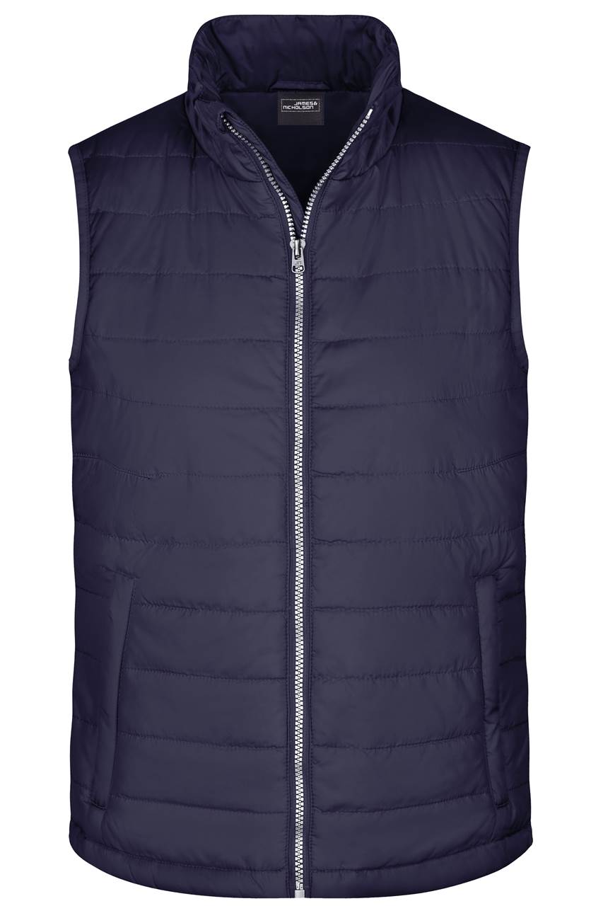 | Popis | Pánská vatovaná prošívaná vesta značky James & Nicholson gramáže 262 g/m2 má vnější materiál ze 100% polyamidu a výplň ze 100% polyesteru. Vesta je lehká, vodě a větru odolná, přední zip s ochranou brady, 2 boční kapsy na zip, na zádech zip pro přístup pro branding. |