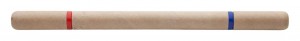 | Popis | Oboustranné kuličkové pero s tělem z recyklovaného papíru má na jednom konci modrou a na druhém konci červenou náplň. Hroty v barevném rozlišení jsou chráněny víčkem z recyklovaného papíru. Potisk je možné umístit na středový tubus. |