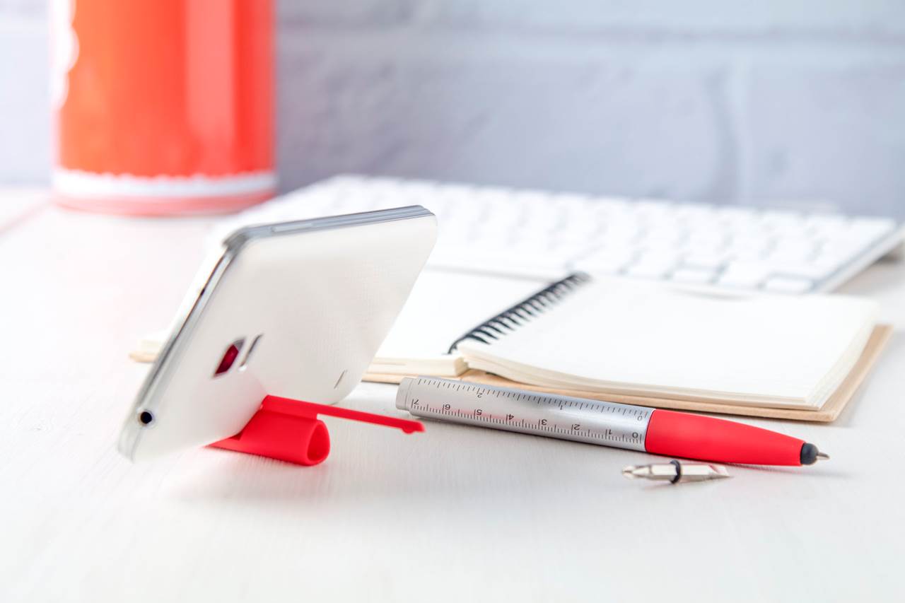 | Popis | Kuličkové pero s modrou náplní, stylusem, stojánkem a čistítkem na mobil, 7cm pravítkem (2,75 palců), šroubovákem. Modrá náplň. |