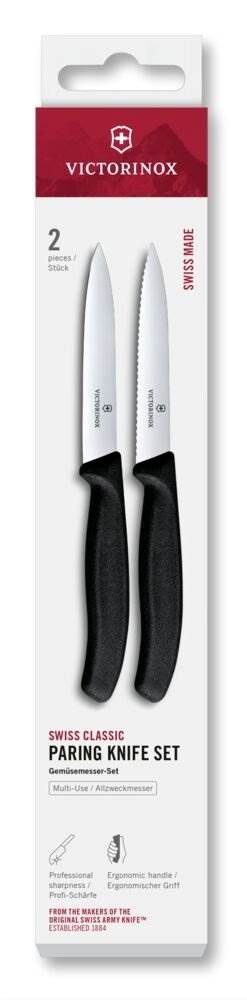 | Popis | Sada dvou kusů nožů VICTORINOX v papírové krabičce. Sada obsahuje nože 90383.C a 90384.C (s hladkým ostřím 10cm a s vlnkovým ostřím 10cm). TATO SADA JE POUZE NA OBJEDNÁVKU. Ohledně možného termínu dodání prosím kontaktujte před objednávkou naše obchodníky. Krabička je zalepená, nelze otevřít bez viditelného odlepení, z toho důvodu je možný potisk pouze na krabičku. |