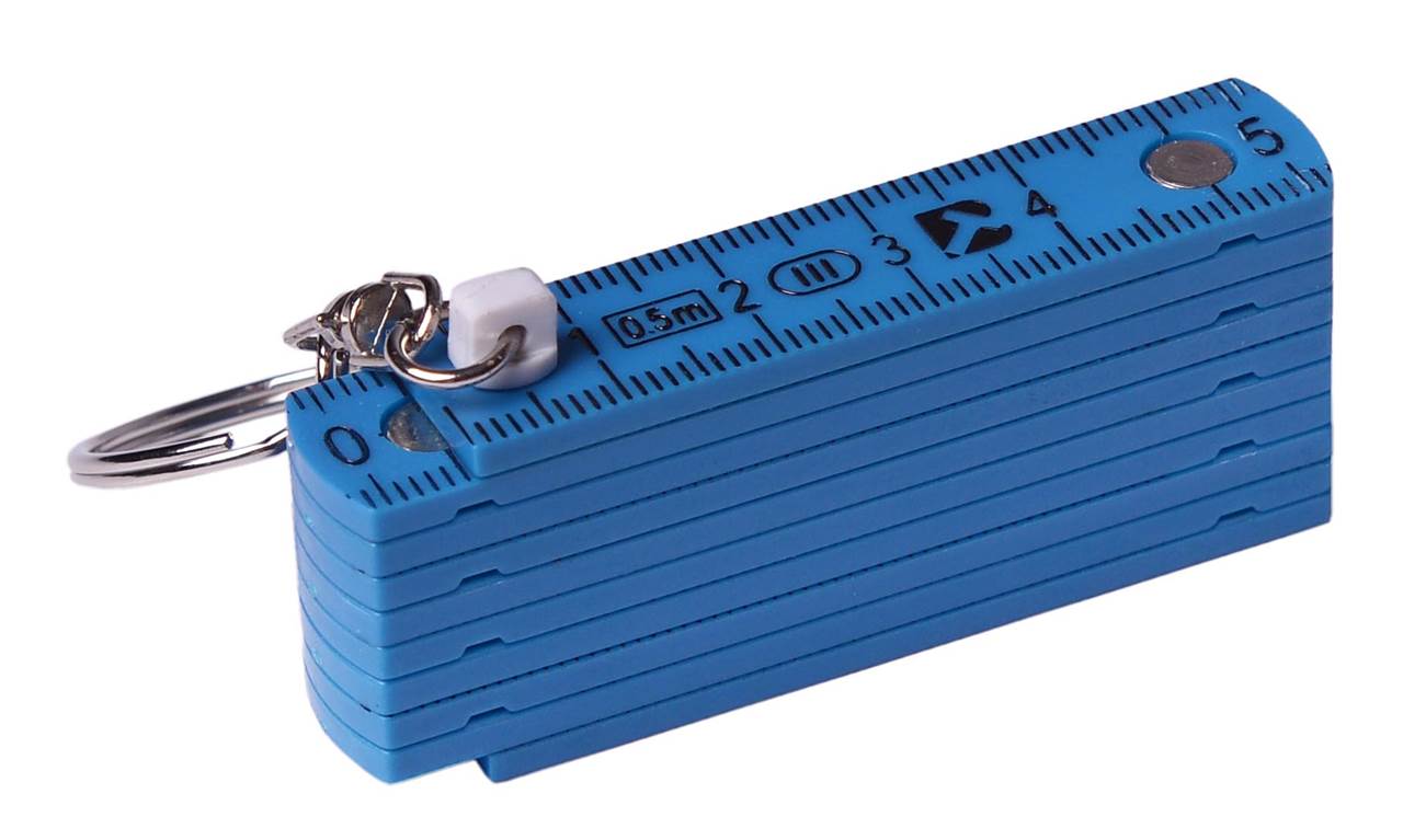 | Popis | Plastový skládací metr o délce 0,5 m s kovovým přívěsným kroužkem. |