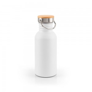| Popis | Jednostěnná láhev z nerezové oceli (90 % recyklovaná). Bambusové víčko má rukojeť z nerezové oceli pro snadné přenášení. Objem až 580 ml. K dispozici v široké škále barev. Dodáváno v dárkové krabičce z kraftového papíru. Protože je výrobek vyroben z přírodních materiálů, barva a velikost výrobku a výsledek tisku se mohou u jednotlivých výrobků lišit. ?70 x 183 mm |