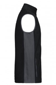 | Popis | Pánská pracovní vesta v kombinaci materiálů a barev: základní materiál je mikrofleece s antipilling úpravou (100% polyester gramáže 280 g/m), na obou bocích jsou kontrastní elastické softshellové vsadky. Límec-stojáček, dvě boční kapsy na zip, hlavní zip s ochranou brady. Obvykle baleno jednotlivě v sáčku. Maximální teplota praní 30 st., lze dát do sušičky na běžné sušení do 60 st., nebělit, nežehlit. |
