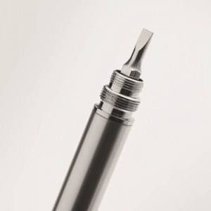 | Popis | Kuličkové pero s vodováhou, pravítkem, stylusem, šroubovacími nástavci a LED světlem. Vyrobeno z recyklovaného hliníku. Součástí balení jsou 3 baterie AG. Modrý inkoust. V ceně zboží je zahrnut recyklační příspěvek na likvidaci elektroodpadů ve výši 2,00 Kč. |