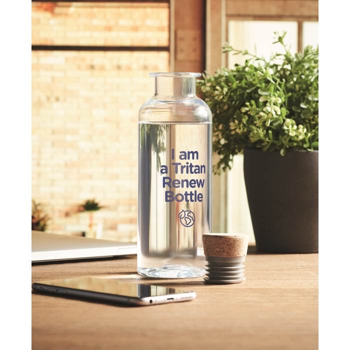 | Popis | Plastová láhev na pití z materiálu Tritan Renew™ s korkovým uzávěrem. Objem: 500 ml. Obvykle baleno jednotlivě v krabičce s popisem. Láhev lze potisknout tampoprintem (plocha 30x60mm), digitálním UV tiskem (plocha 30x80mm), nebo na korkový uzávěr tampoprintem či laserovým rytím (plocha 30x30mm). Cenu rotačního sítotisku či digitálního rotačního tisku ( plocha 170x100mm) zkalkulujeme na dotaz. Vzhledem k transparentnímu povrchu je nutné tisk tampoprintem realizovat dvousložkovou barvou. |