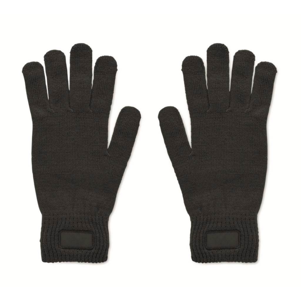 | Popis | Pletené rukavice z měkkého strečového polyesteru RPET s nášivkou. |