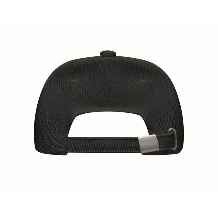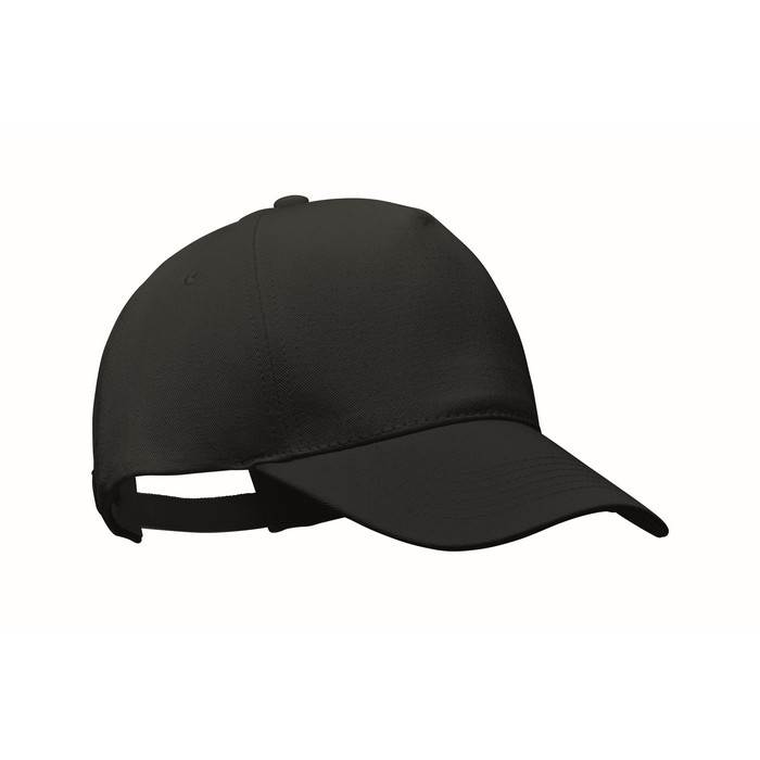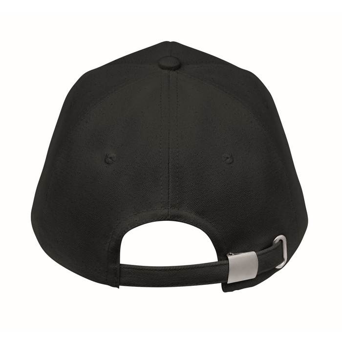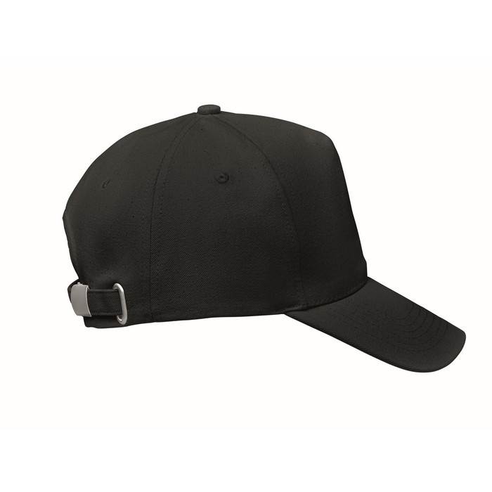 | Popis | Pětipanelová baseballová čepice z broušené organické bavlny o gramáži 250 g/m2 s nastavitelným páskem a zapínáním na kovovou přezku vzadu. Čtyři kovová odvětrávací očka ve stejné barvě. |