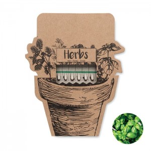 | Popis | Tyčinky se semínky pažitky, bazalky a petržele v obalu z hnědého kartonu z ozdobným potiskem. Vyrobeno v EU. |
