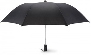 | Popis | Dvoudílný skládací deštník ze 190T polyesteru s automatickým otevíráním má ocelovou konstrukci, černé pogumované držadlo z ABS plastu s poutkem a pouzdro v odpovídající barvě. |