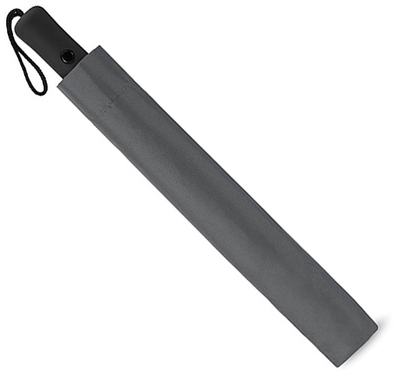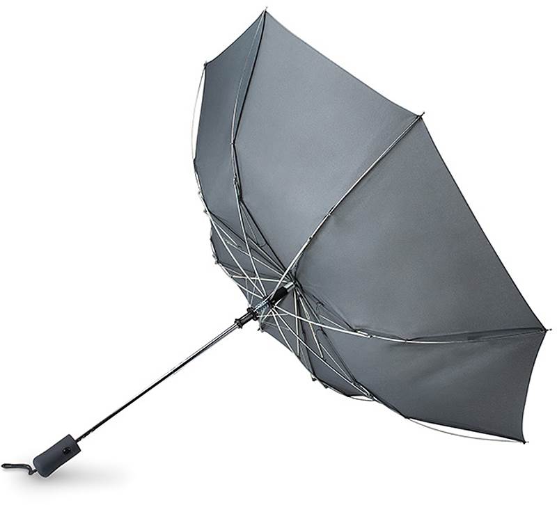 | Popis | Dvoudílný skládací deštník ze 190T polyesteru s automatickým otevíráním má ocelovou konstrukci, černé pogumované držadlo z ABS plastu s poutkem a pouzdro v odpovídající barvě. |