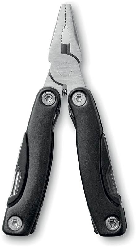 | Popis | Skládací multifunkční nářadí s kleštěmi z nerezové oceli má 9 funkcí - např. otvírák, pilku, šroubovák aj., dodáváno je v 600D polyesterovém pouzdře. |