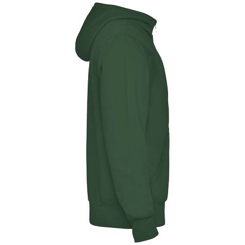 | Popis | Mikina s kapucí, vysokým výstřihem a celorozepínacím zipem. Žebrované detaily v kapuci a lemování kapes. Kapsa ve stylu klokanky. Manžety a pas s žebrováním 2x2. Odnímatelný štítek. Úplet 50% bavlna, 50% polyester, 280 g/m2. |